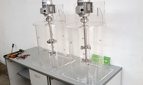 ▲ 多種冷模實驗裝置應用,對于研究放大后攪拌機功率、槳型選擇、混合效果、氣泡分布特性等提供了實際基準;