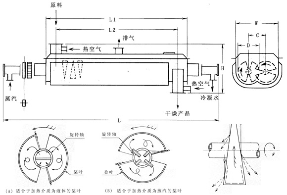 5、操作方式多,可間隙操作也可連續(xù)操作,可常壓操作也可真空操作,也可熱風(fēng)并用操作。