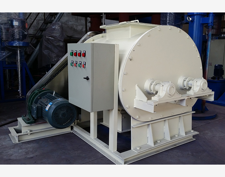 重力混合機臥式筒體內裝有雙軸旋轉反向的漿葉,漿葉成一定角度將物料沿軸向、徑向循環翻攪,使物料迅速混合均勻;為降低設備易損件的更換成本,槳葉葉片可做成兩片式,在葉片基座上墊一塊可移動小葉片,可直接更換磨損的小葉片,經濟快捷; 出料形式一般為氣動(手動)翻板閥,圓弧閥門緊密嵌入筒內,與筒內壁齊平,無物料堆積和混合死角現象;標準型有大開門小開門之分,大開門開口到筒邊,放料干凈快捷,殘留少。