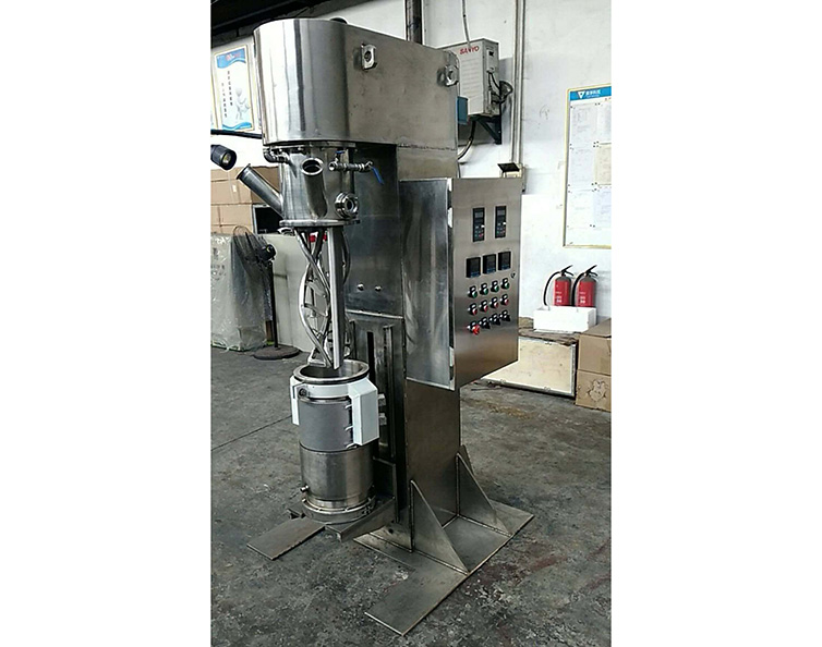 雙行星分散機通常主要用于在粘稠的物料中加入粉料的攪拌,常規的雙行星解決不了粉料在粉料在粘稠物料中的抱團現象,因此就需要一套高速分散裝置來分碎這種抱團的物料,是粉料能充分均勻的混合到粘稠的物料中區。
