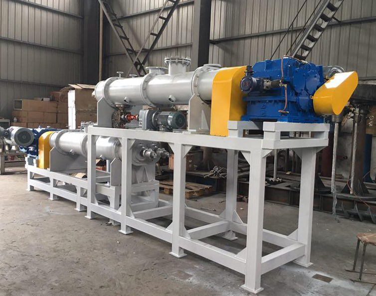WZS型自清潔脫揮器的裝料系數(shù)通常范圍是50-80%,為氣-液分離和流動留出了足夠的自由空間。設(shè)備內(nèi)的平均裝料高度取決于出料端的堰板,該堰板的幾何形狀和高度可調(diào)節(jié)。與螺桿擠壓類設(shè)備不同,WZS型自清潔脫揮器內(nèi)物料的軸向輸送速度與攪拌軸轉(zhuǎn)速無關(guān),使之對進(jìn)料量和組成的變化都具有極好的適應(yīng)性,并可減少設(shè)備的磨損。