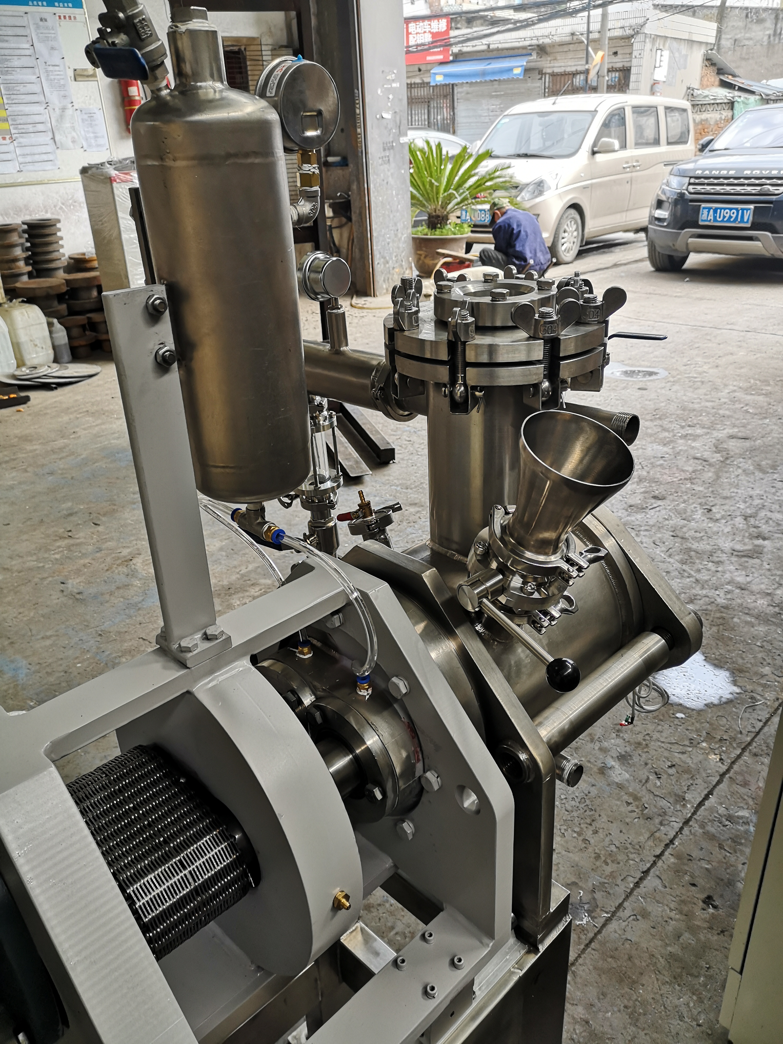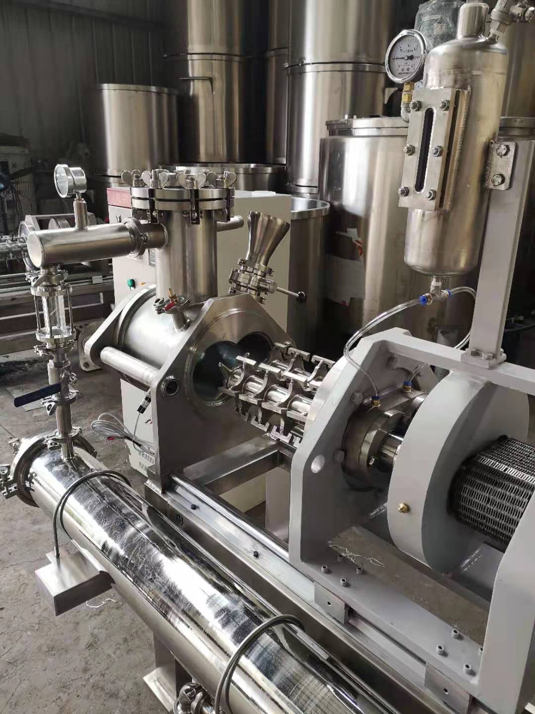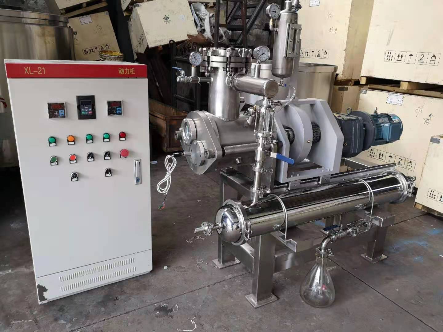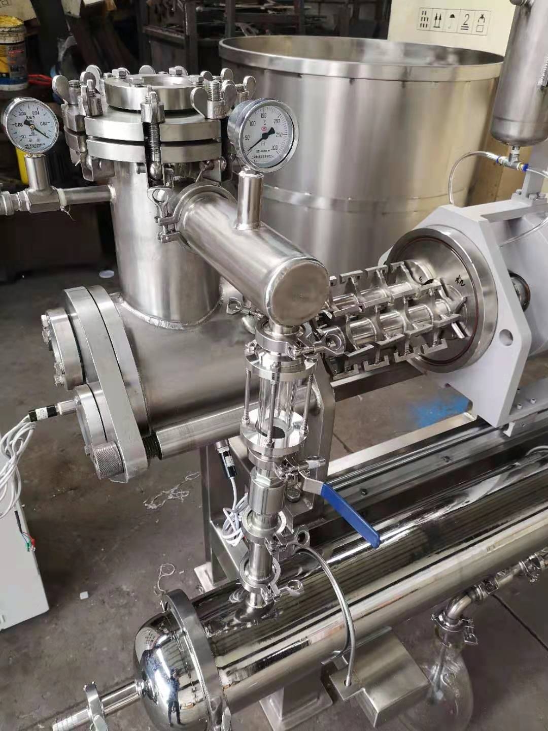 為了適應(yīng)在真空狀態(tài)下的操作,專門安裝了適用于高粘度物料的齒輪泵式出料器。該出料器直接安裝在主設(shè)備上,消除了設(shè)備內(nèi)的死角。齒輪泵式出料器在稍微超負(fù)荷的條件下工作,以保證物料能連續(xù)地排出,并輸入下一工段進(jìn)行包裝。