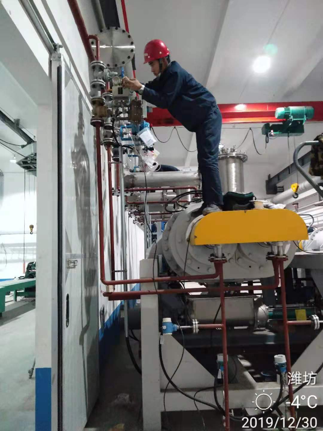 為了適應在真空狀態下的操作,專門安裝了適用于高粘度物料的齒輪泵式出料器。該出料器直接安裝在主設備上,消除了設備內的死角。齒輪泵式出料器在稍微超負荷的條件下工作,以保證物料能連續地排出,并輸入下一工段進行包裝。