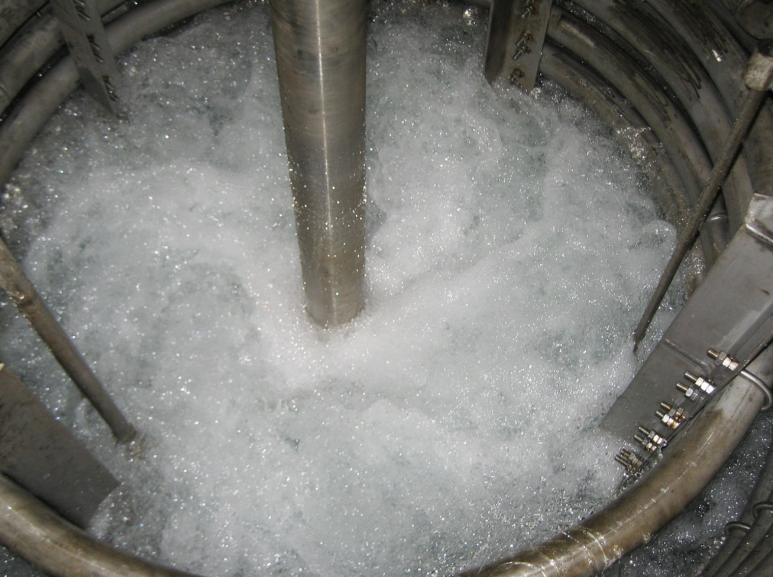 反應(yīng)物料粘度增大,固相物料分散困難,宏觀性循環(huán)需求加大,改進(jìn)軸流槳排量加大;氣體分散距離受到很大的影響,氣體分布較遠(yuǎn)的地方靠單純的自吸葉輪無法實(shí)現(xiàn)等,物料有一定粘度時,吸入的氣體進(jìn)入液相后產(chǎn)生的氣泡會較大,且不易破碎;